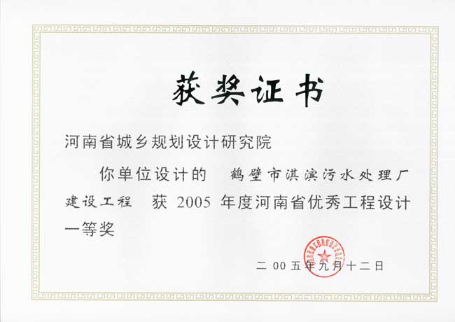 ★污水处理厂工程获得2005年度省优秀设计一等奖