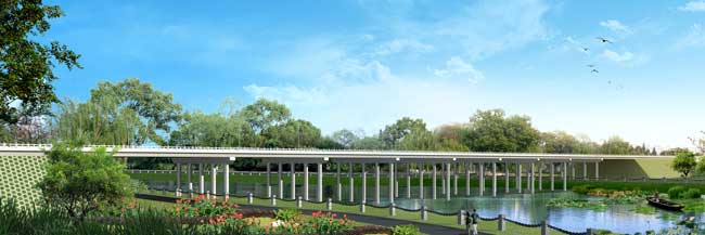 项目概况:新郑市移民大道双洎河桥位于新郑市南区移民大道跨越双洎河处,是一座跨越双洎及越登杞地方铁路的重要桥梁。桥型为七跨装配式预应力混凝土箱形连续梁桥,主体长度280米,桥面宽度40米,单孔跨径40米。本桥梁的建设将连接双洎河两岸,打通新郑市向南发展的通道。