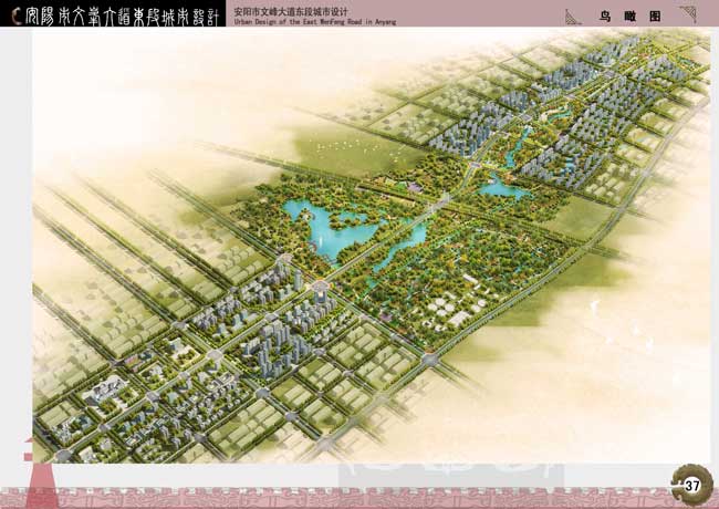 规划提出“文峰耸秀,水绿靓城”,旨在打造城市空间发展长廊,串连新老城区以及各个功能中心,塑造地域人文精神,结合“路、水、绿、房、文”五大要素,使整个街道空间景观成为演绎安阳新时代人文精神的平台,展示了安阳的时代风貌和城市特色。