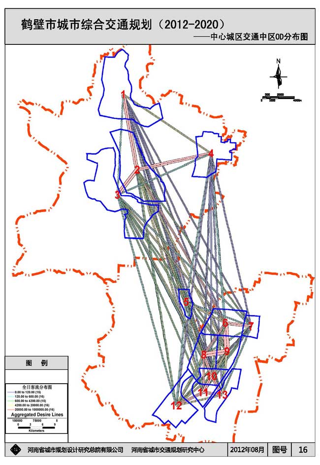 《鹤壁市城市综合交通体系规划》以深入的调查分析为基础,以支持城市社会经济发展为目标,落实城市总体规划布局为依据,建立综合协调的运输模式及交通体系为根本,指导城市交通系统健康有序地发展,空间维度上注重区域协调、时间维度上注重发展趋势把握、系统维度上注重综合运输体系构建。 主要内容包括:现状分析评价、交通发展战略、交通需求预测和城市综合交通体系规划 (包括区域及对外交通系统规划、城市道路网络规划、货运交通系统规划、公共交通系统规划、客运枢纽系统规划、停车系统规划、慢行交通系统规划、交通管理规划、近期建设规划等部分。